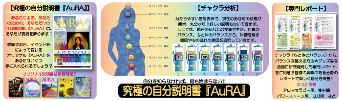 | ●オーラ&チャクラ フルレポート(1時間) ※アメリカ最新式のオーラ解析機械によるレポート診断 ※解説付き ※ 『フルレポート』内容 A4サイズ約28ページ 将来の展望・対人・恋愛関係・仕事と金運・社会生活・健康と成長・心と体などなど(下図参照) |